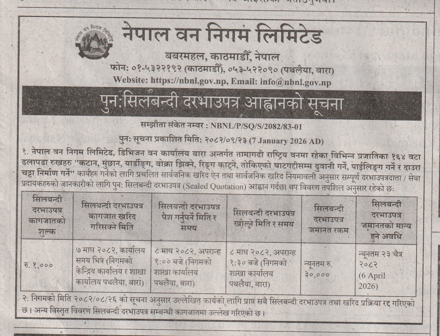 पुनः सिलबन्दी दरभाउपत्र आह्वानको सुचना...